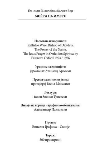 Во издание на Скопската православна епархија, излезе од печат книгата „Моќта на Името“ од Епископот Калист Вер.